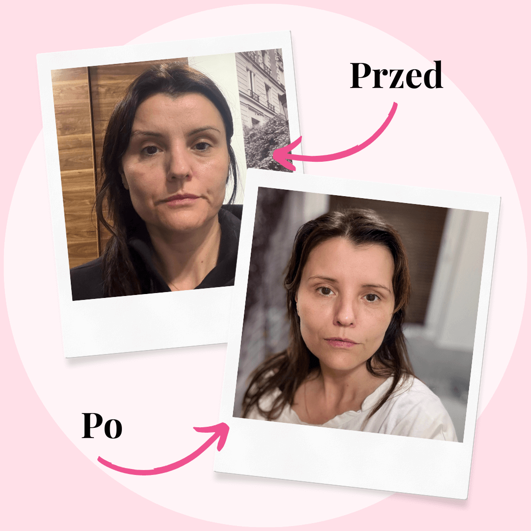 Przed czułam olbrzymi ból i napięcie, dziś żadnego bólu nie ma. Praktycznie zniknęły mi cienie pod oczami, poprawił się owal, błysk skóry, a także bardzo zaskoczyło wzmocnienie stawu skroniowo-żuchwowego.